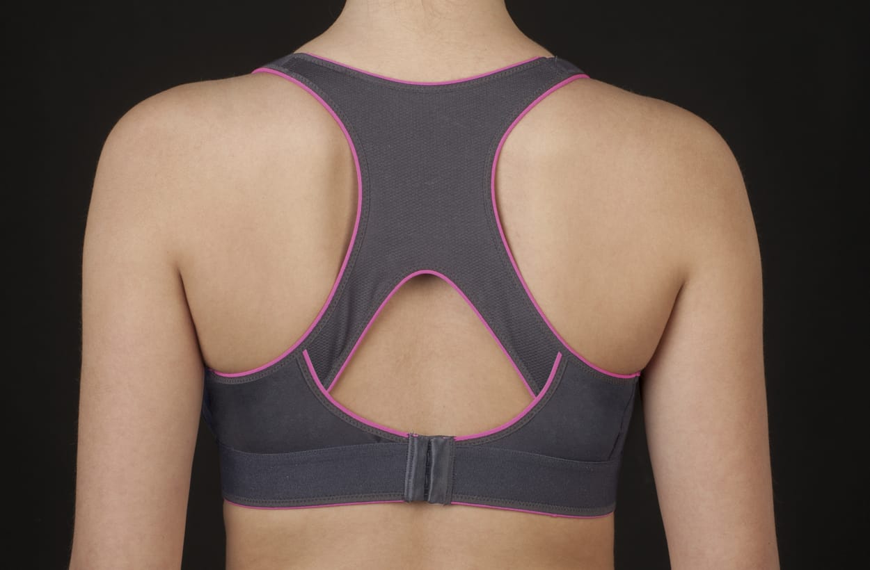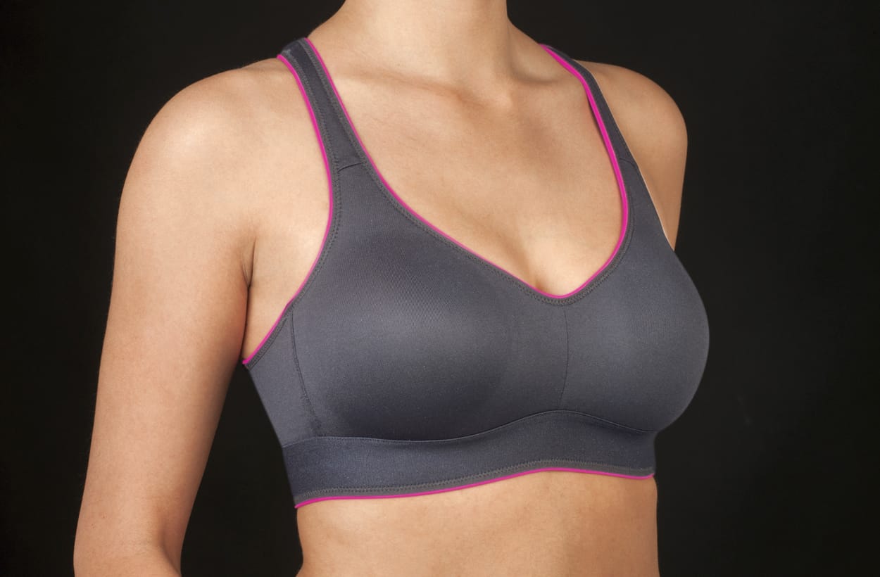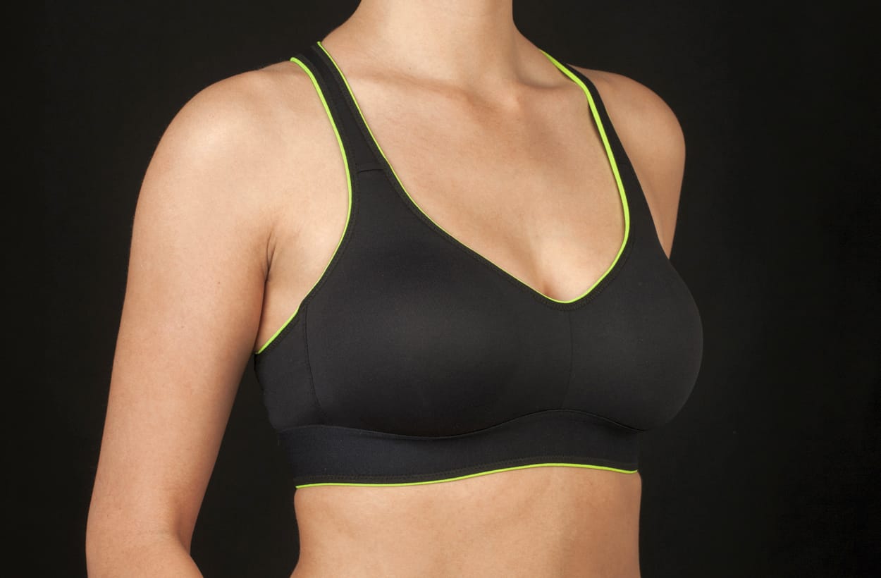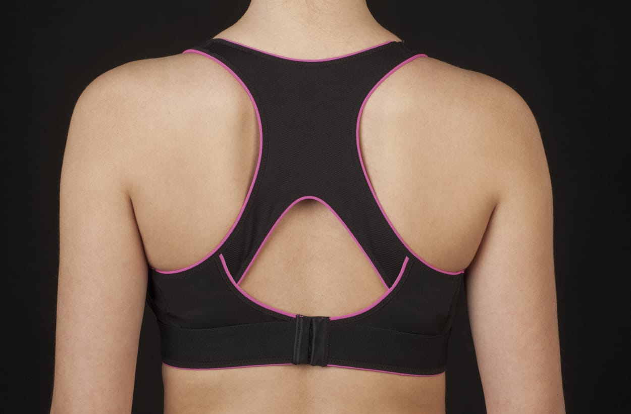 Sujetador deportivo de microfibra sin aros y con copa de relleno perforada para total transpirabilidad. Espalda olímpica.